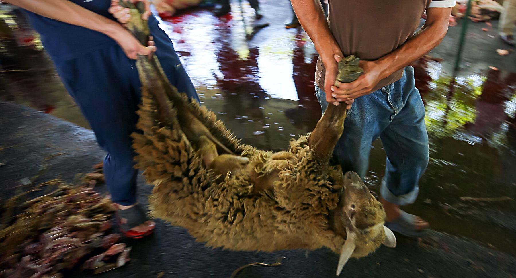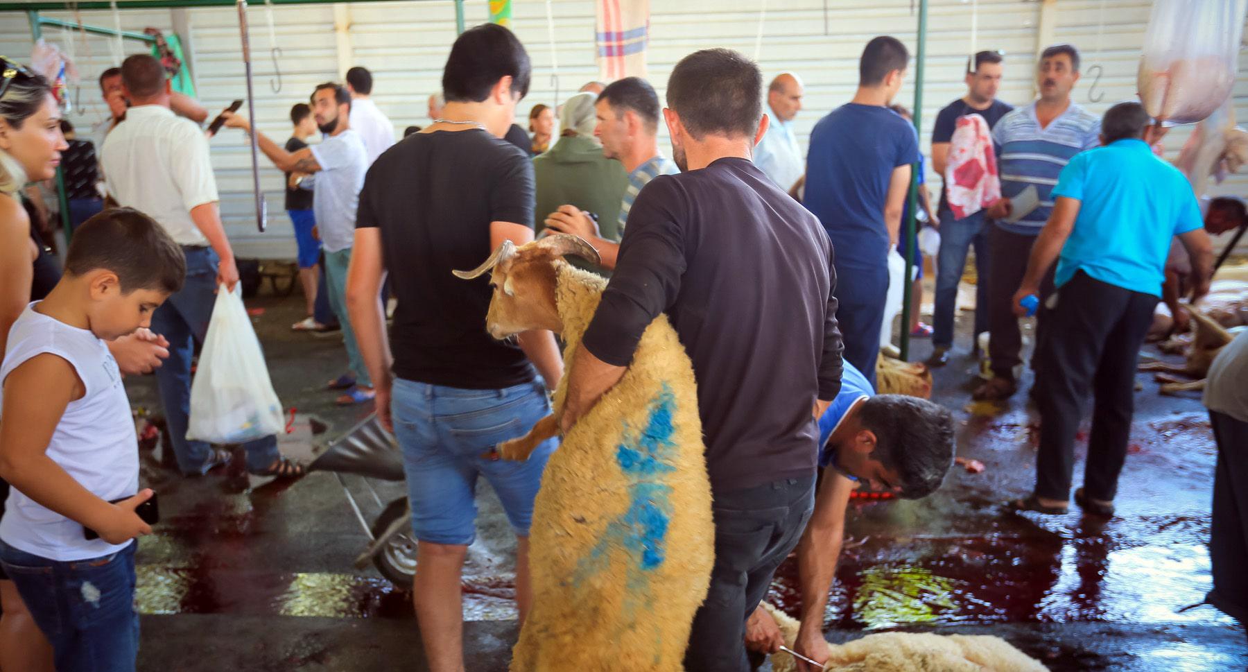 С утра начались церемонии жертвоприношения. Власти организовали ярмарки по продаже 35 тысяч голов скота, еще 13 тысяч голов выставили на продажу фермерские хозяйства. Забой скота проводился прямо в местах продажи.