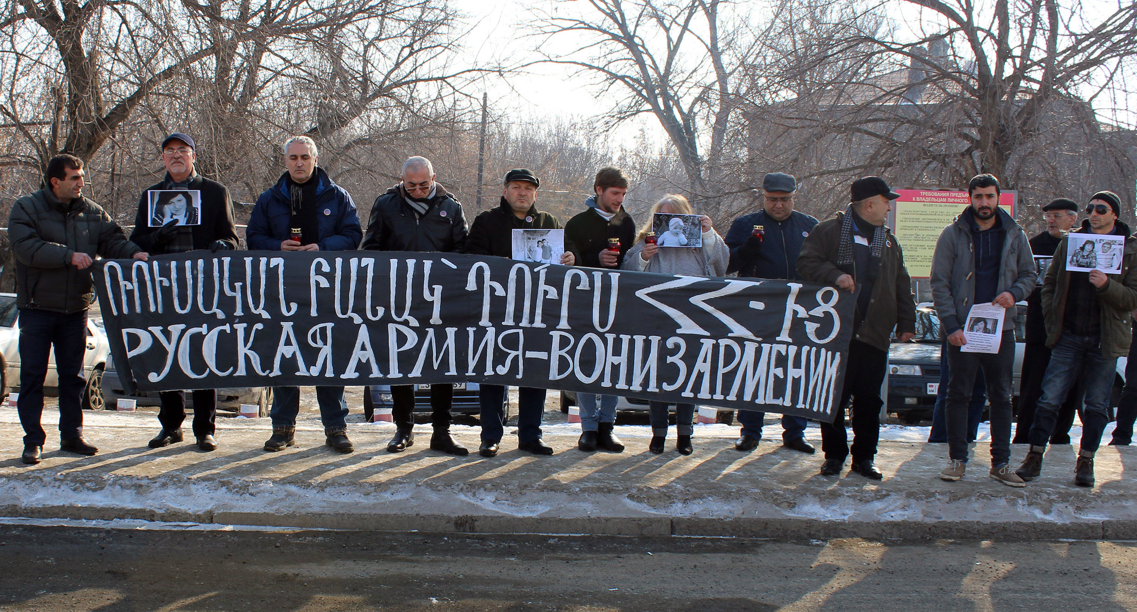 Жители Армении 12 января собрались перед российской военной базой в Гюмри в четвертую годовщину убийства семьи Аветисян. Они потребовали вывода российских войск из страны. Представители военной базы в Гюмри не вышли к протестующим. Всего на акции собрались около 30 человек. Организаторы мероприятия отметили, что акция была “молчаливая”: в знак уважения к памяти погибшим. О том, что происходила у ворот российской военной базы в Гюмри, фоторепортаж корреспондента “Кавказского узла” Армине Мартиросян.