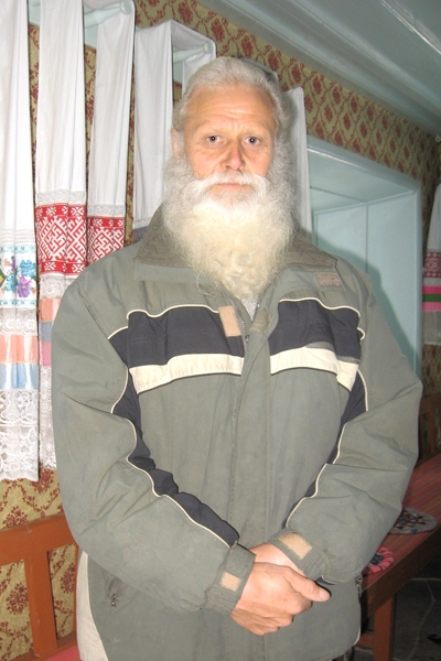 Групповое моление духоборцев в молельне «Сиротский дом». Во время молебна духоборцы сидят на деревянных лавочках, под расшитыми льняными полотенцами – «утирками». Село Гореловка Ниноцминдского района Грузии.