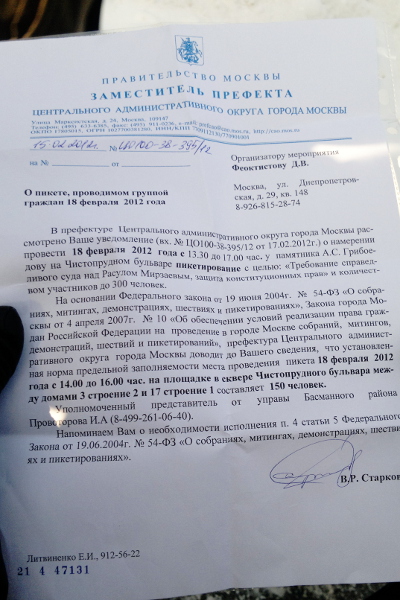 Акция националистов "Мирзаев должен сидеть!" на Чистопрудном бульваре в Москве 18 февраля 2012 г. Фоторепортаж корреспондента "Кавказского узла" Юлии Буславской