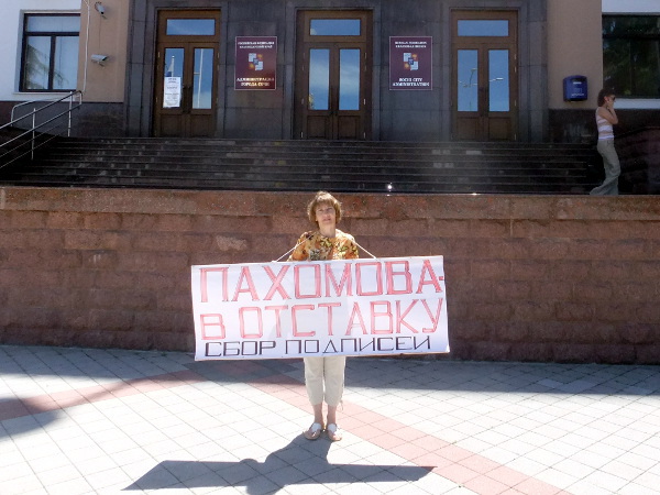 28 мая в 10-00 Ирина Бровкина начала очередной одиночный пикет за отставку мэра Сочи Анатолия Пахомова на площади у мэрии.