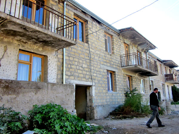 Акоп Карапет Артин перед зданием гостиницы в райцентре Кашатахского района в Бердзоре, где его семье предоставили временное жилье.