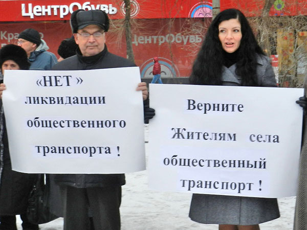 Жители Волгоградской области выступили против сокращения пассажирских перевозок в регионе. Волгоград, 14 февраля 2013 г. Фото Татьяны Филимоновой для "Кавказского узла"