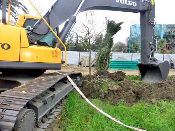 В Сочи рядом с железнодорожным вокзалом выкорчеваны пальмы. 3 марта 2013 г. Фоторепортаж корреспондента "Кавказского узла" Светланы Кравченко