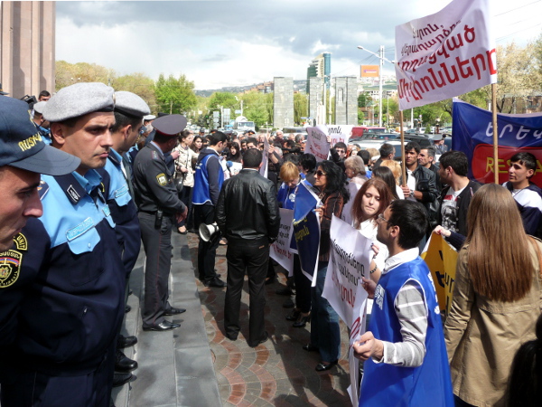 Акция протеста молодежного крыла АНК у мэрии Еревана 19 апреля 2013 г. Фото корреспондента "Кавказского узла" Армине Мартиросян.