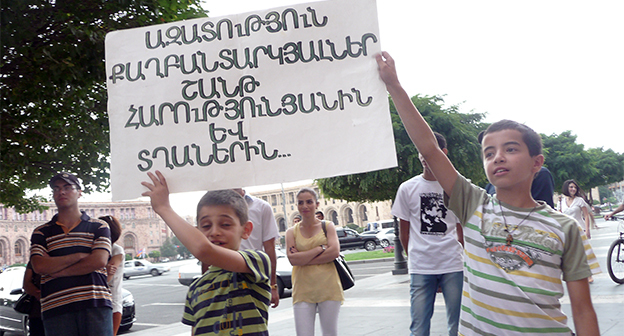 Акция протеста против повышения тарифов на электроэнергию в Ереване 1 июля 2014 года. Фоторепортаж корреспондента "Кавказского узла" Армине Мартиросян